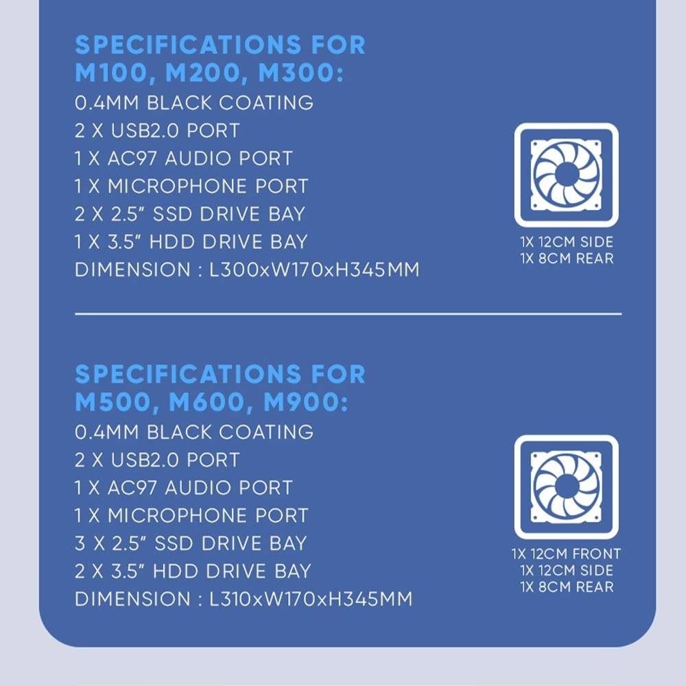 - Side Panel: Supports 2 x 12cm fans