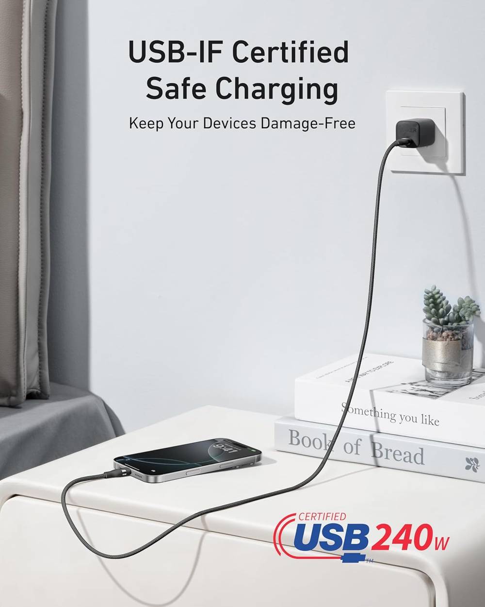 - Super-Fast 240W Cable: This 240W USB-IF certified cable can charge your 16-inch MacBook Pro (M3 Pro) to 50% in just 26 minutes or your iPhone 16 Pro Max to 50% in 29 minutes. (Note: This cable does not support screen mirroring.)