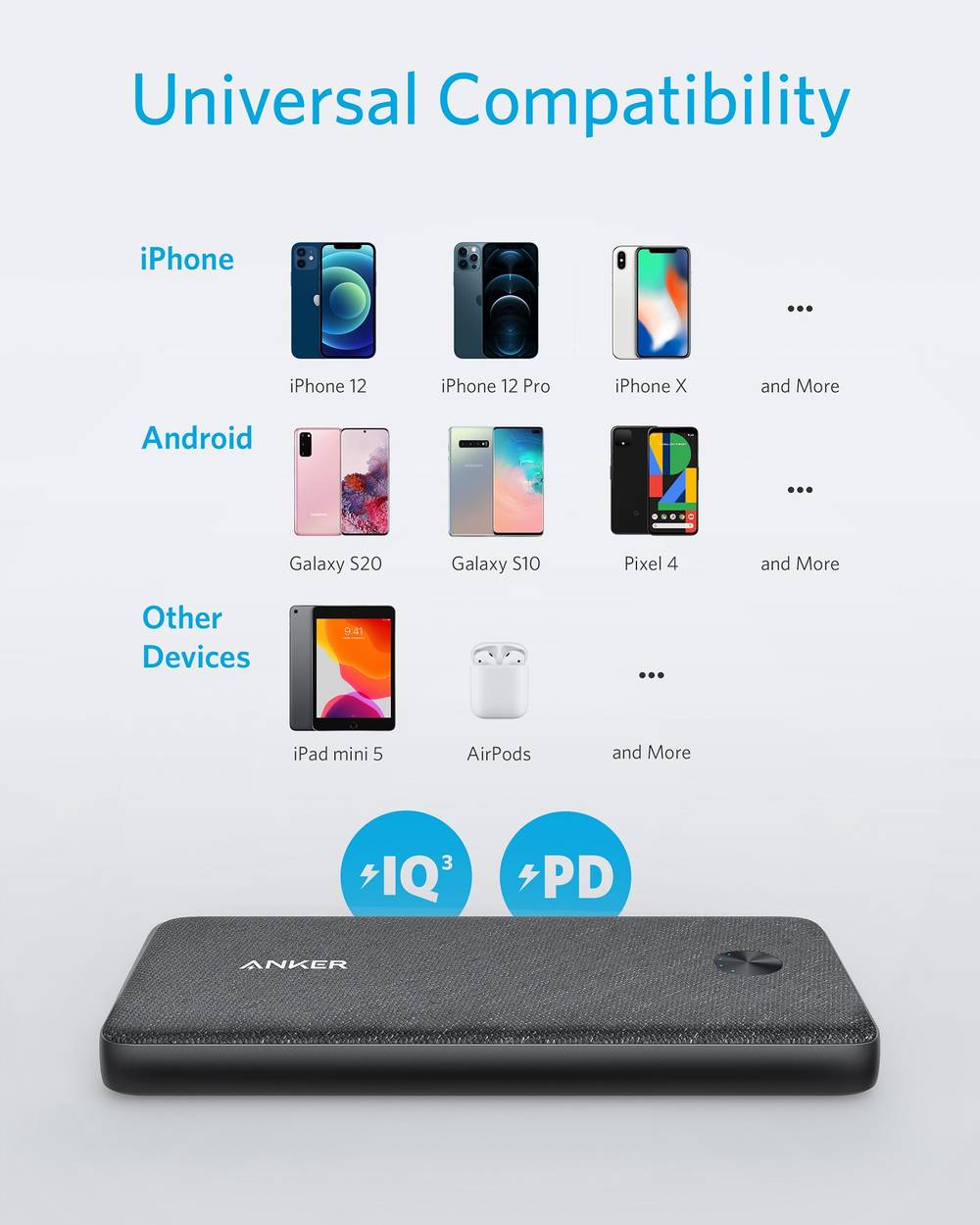 - Anker's exclusive PowerIQ and VoltageBoost technology combine