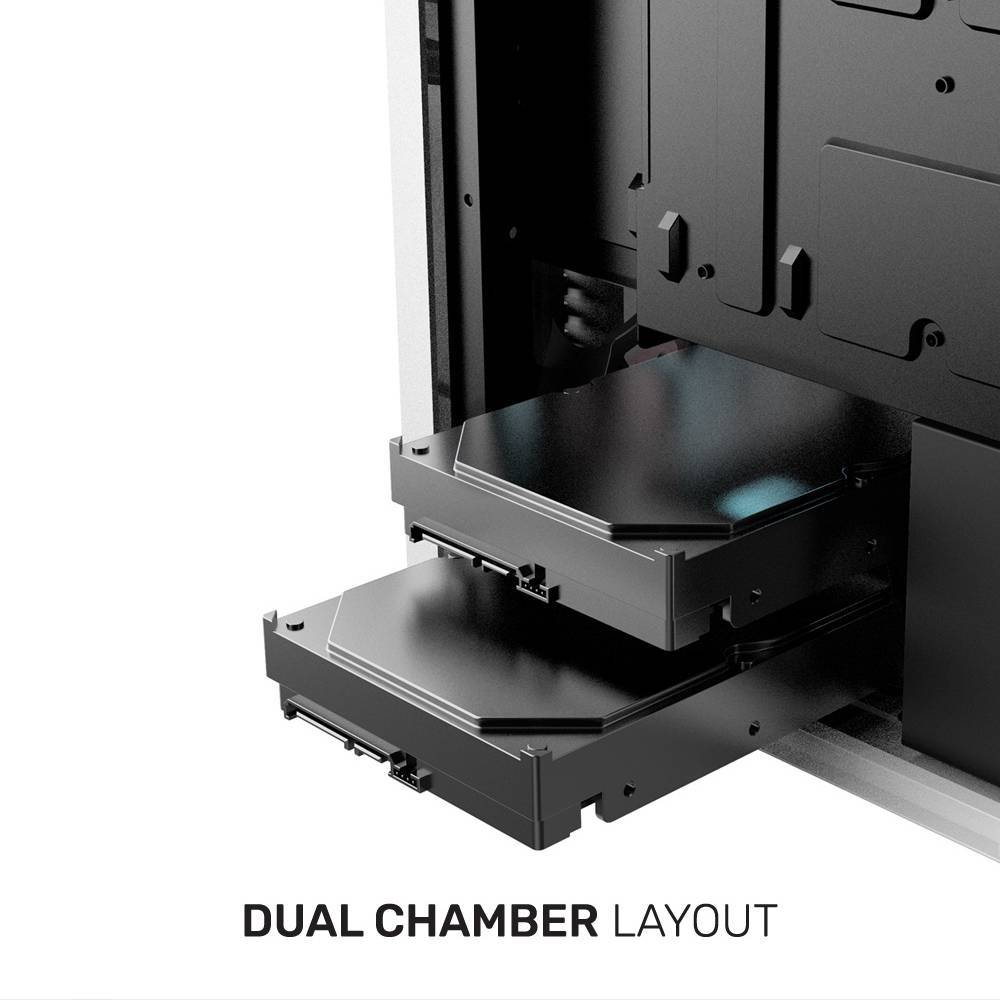 - Dual Chamber Case with PSU Shroud to Optimize Airflow, Cable-Management, and System Cooling