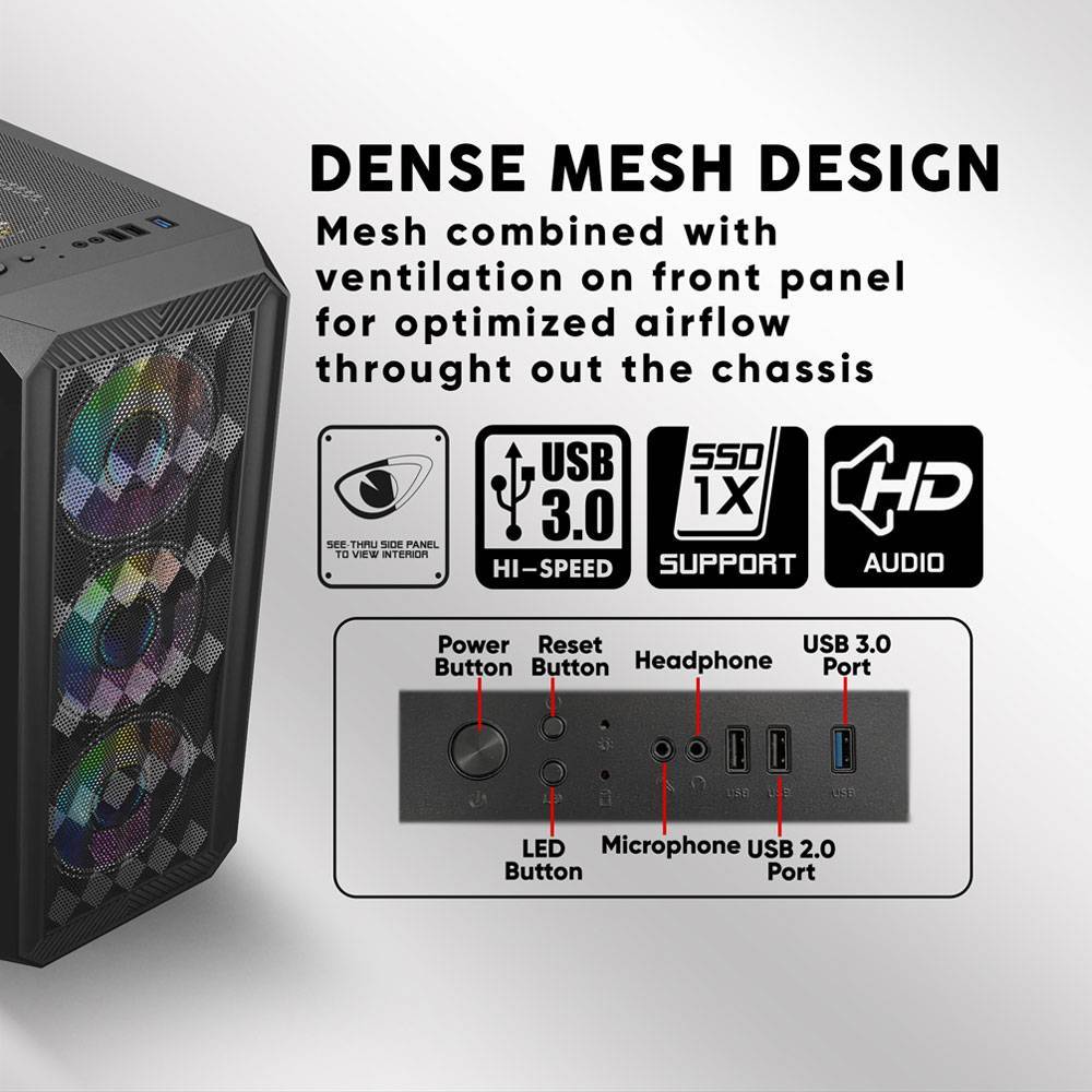 - Support Up to ATX Motherboard
