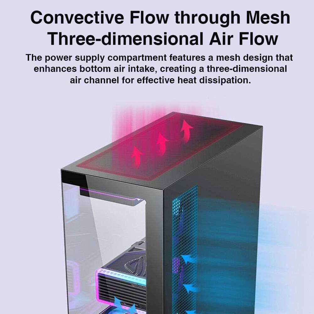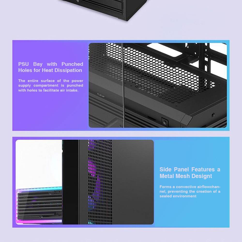 - Panoramic Dual-View Design: Features wrap-around tempered glass on the front and side panels, providing an unobstructed view of your internal components.