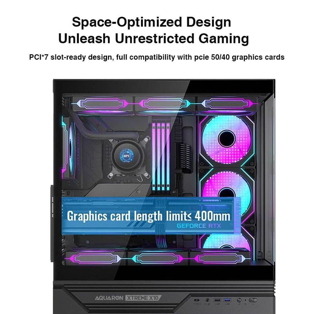 - Extreme GPU Compatibility: A spacious interior that accommodates high-end graphics cards up to 400mm in length, fitting the latest RTX 40-series and beyond.