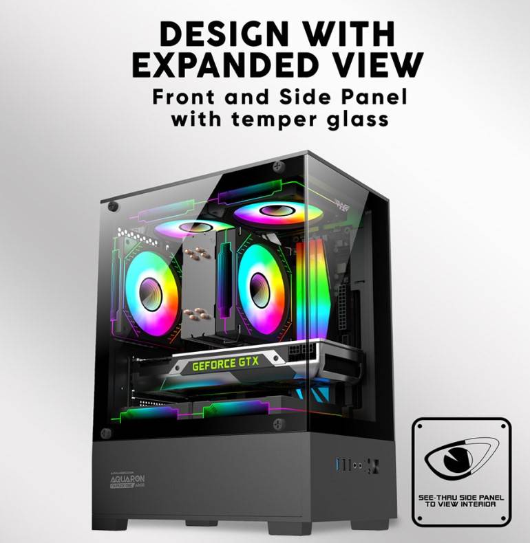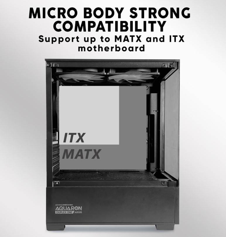 Armaggeddon Gaming Case M-ATX AQUARON Duplex ONE Black + 3xARGB (Bottom USB)