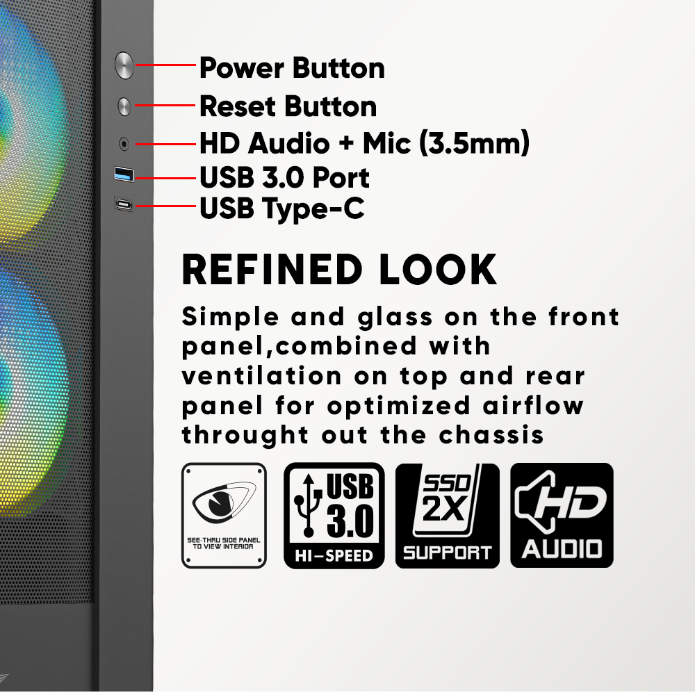 - Modern USB Type-C Connectivity: Features a front-panel USB Type-C port alongside USB 3.0, providing high-speed data transfer and compatibility with the latest peripherals.