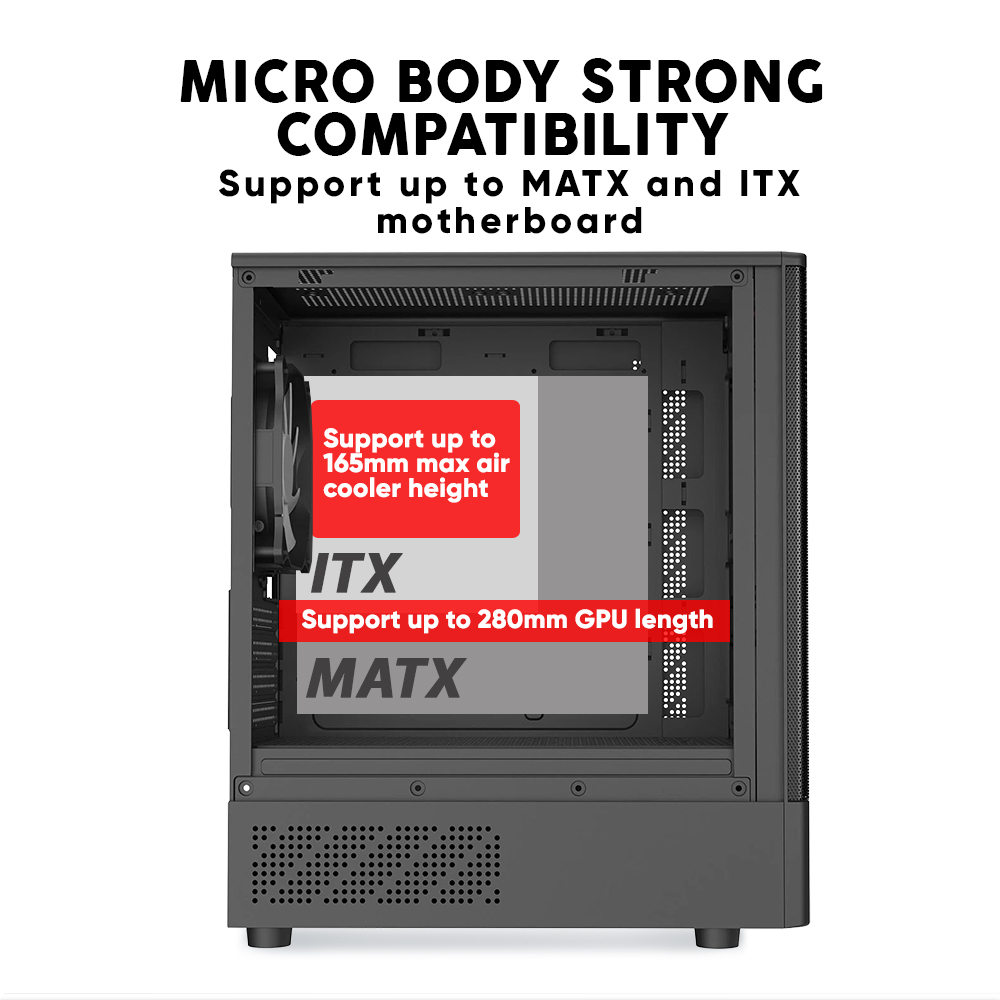- Maximum Airflow in Mini-Tower: Designed to support up to 7 fans total, with 5 already included (Front, Top, and Rear) to ensure optimal thermals for your GPU and CPU.