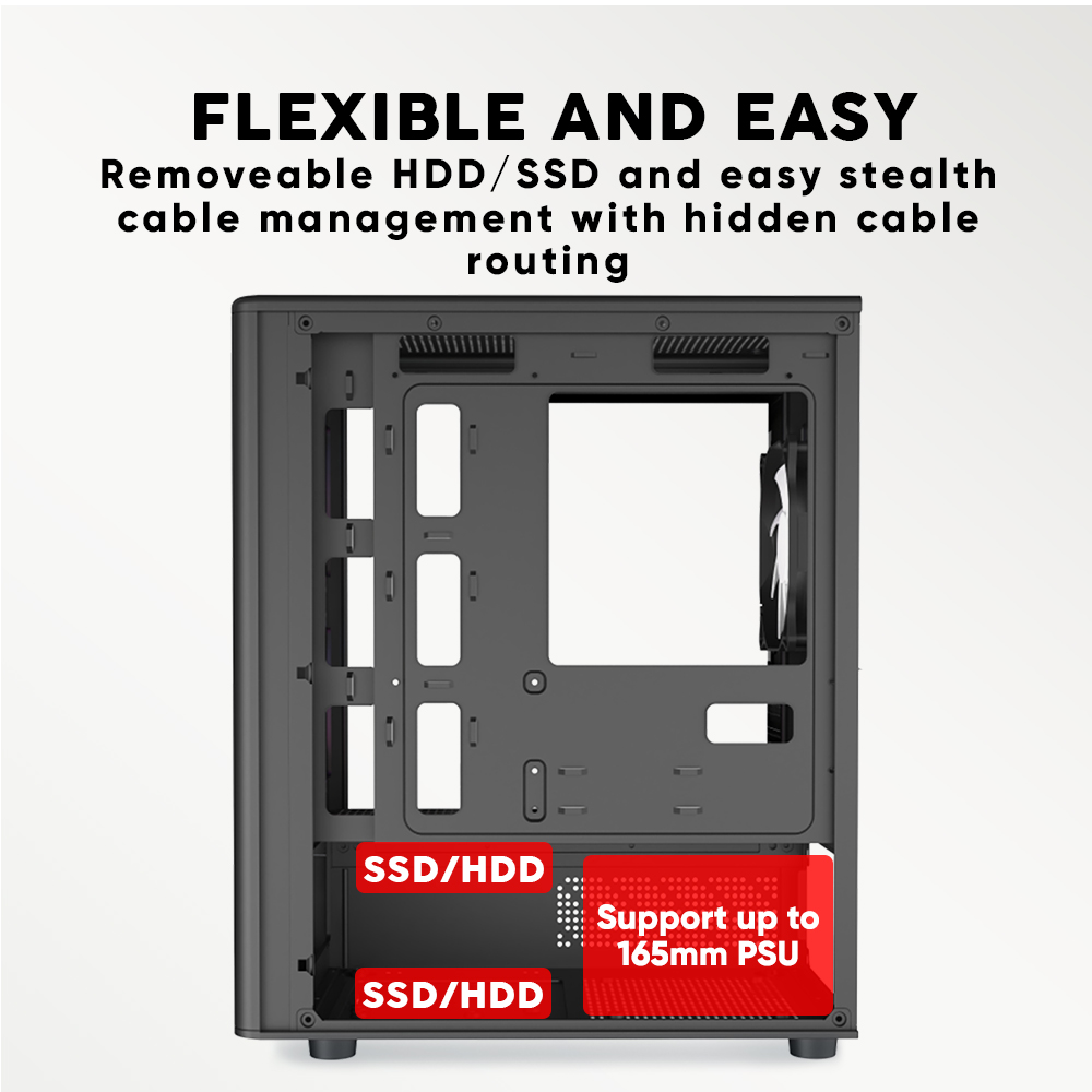 - Flexible Component Support: Despite its compact size, it accommodates both standard ATX and SFX power supplies, giving you more options for future upgrades.