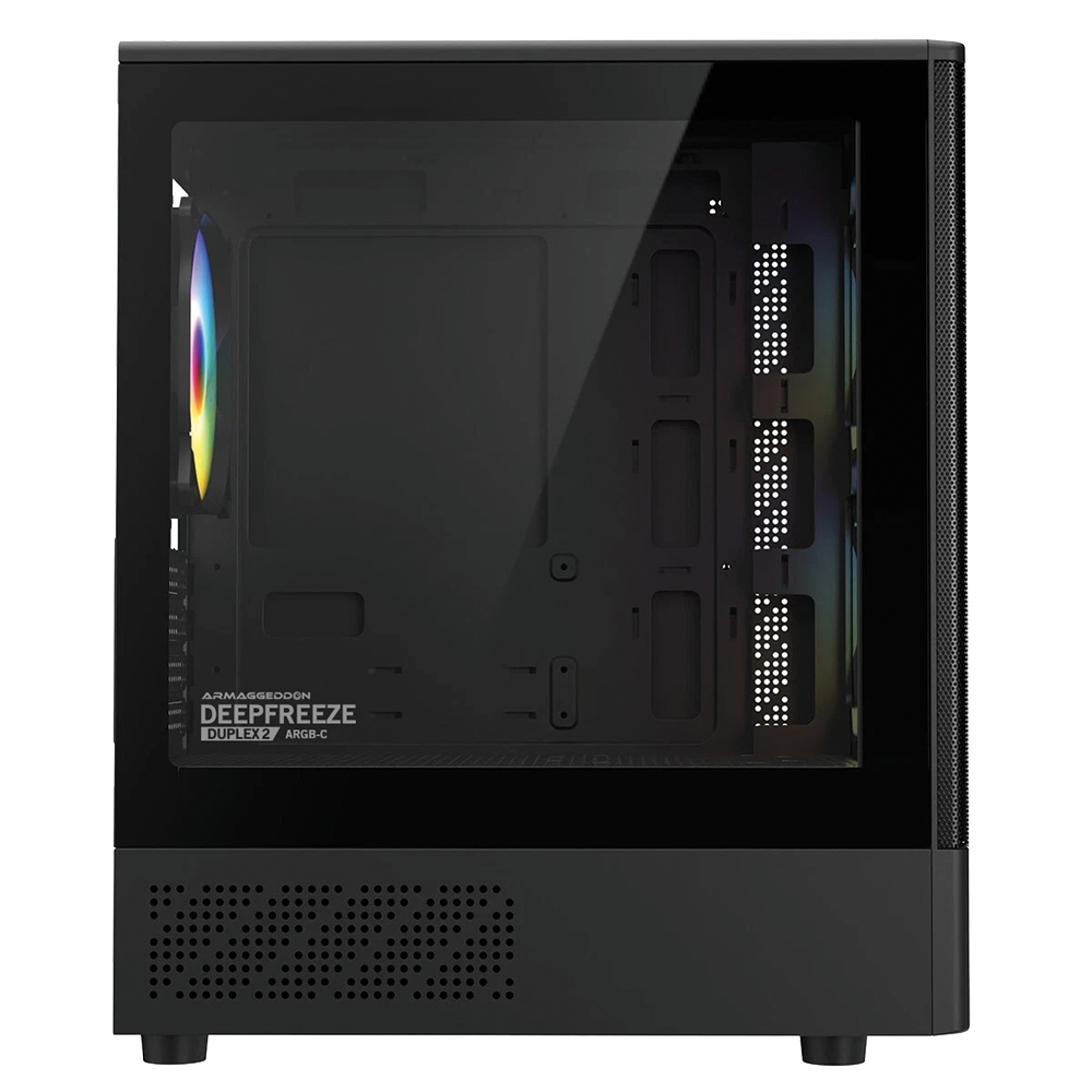 The Armaggeddon Deepfreeze Duplex 2 is a high-performance Micro-ATX chassis that combines the popular "panoramic" glass aesthetic with an emphasis on thermal efficiency. Featuring a dual-chamber design and modern connectivity, this case is built to showcase your components while providing a streamlined path for airflow and cable management.