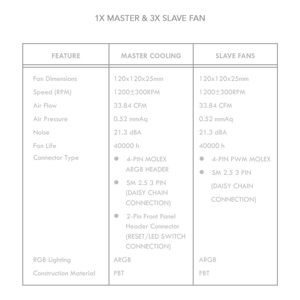 - Master-Slave Daisy Chaining: The kit uses a "Master" fan that controls the lighting and synchronization for all "Slave" fans. This allows you to connect up to 8 fans in a series to a single header, significantly reducing cable clutter.