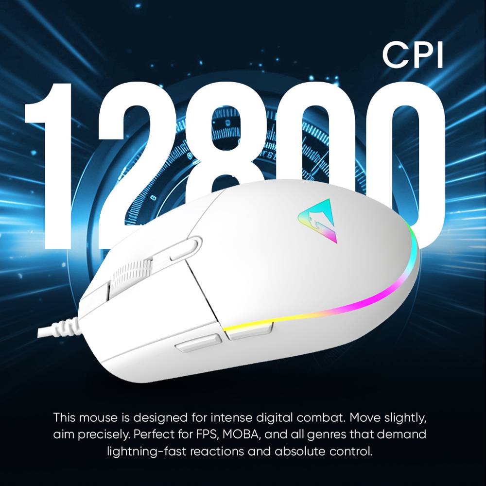 Armaggeddon Gaming Mouse Wired 12800CPI Silent RAVEN III SIGMA STEALTH White