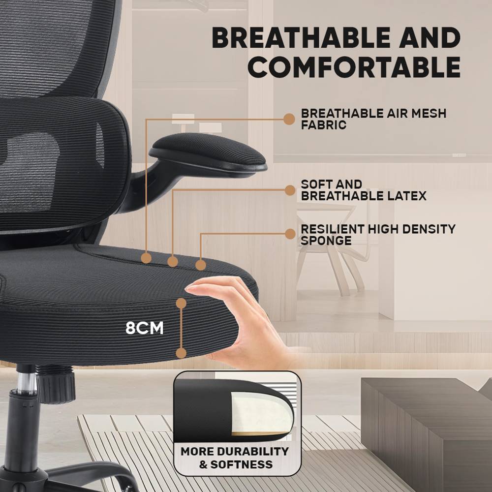 - The Armrest of the office chair with a Flip-up Design allows users to easily raise or lower the armrest as needed