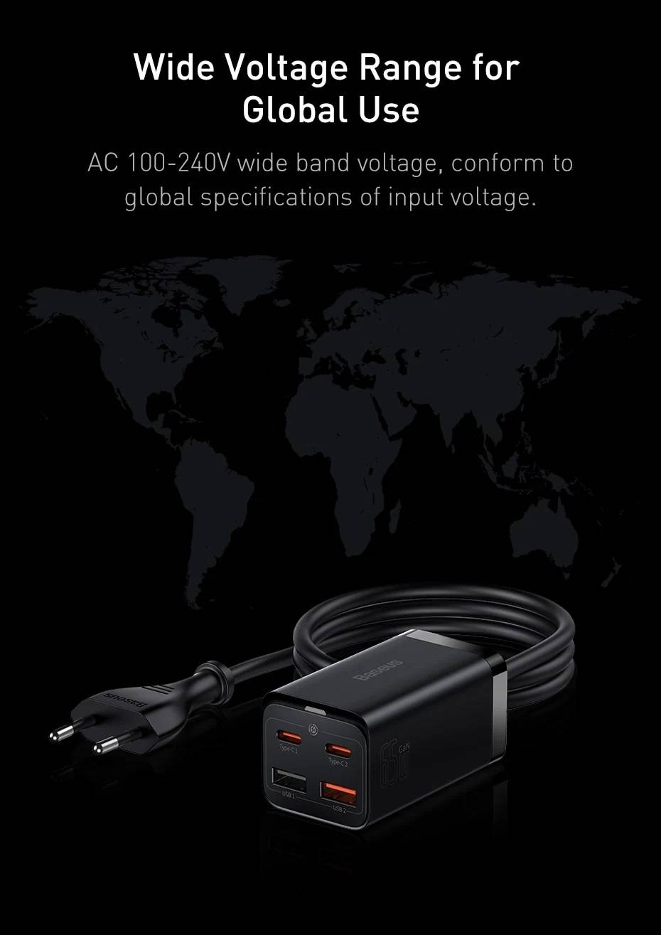 - Compact design Thanks to the new GaN3 technology, the Baseus 65W desktop charger is 10% smaller than its predecessor and measures only 2.57in*1.58in*1.45in to meet the requirements of business trips, travel, home and offic