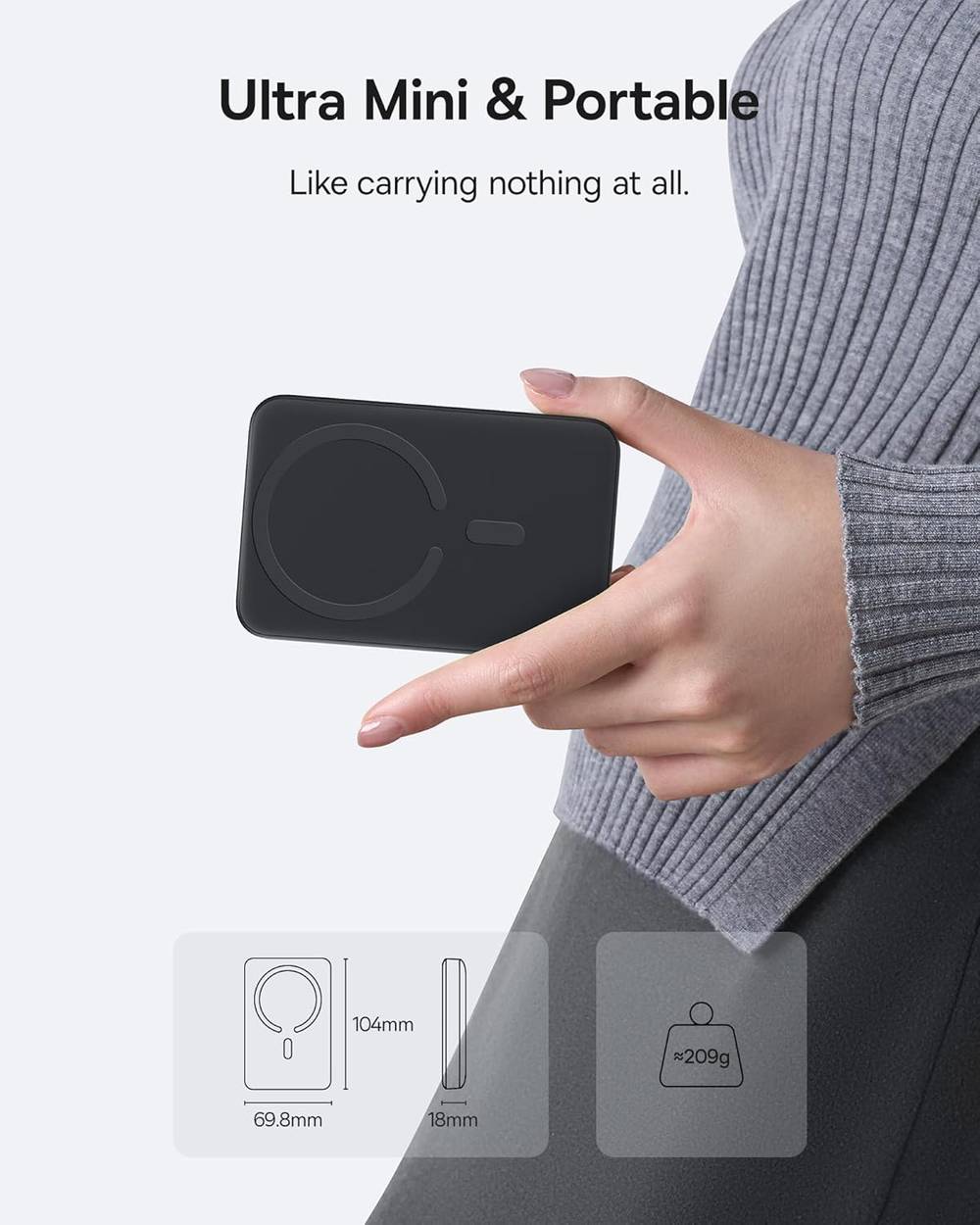 This power bank for iPhone packs a massive 10,000mAh capacity, making it the perfect wireless power bank for your daily needs. Stay powered all day without being tied to an outlet with this magsafe portable charger.