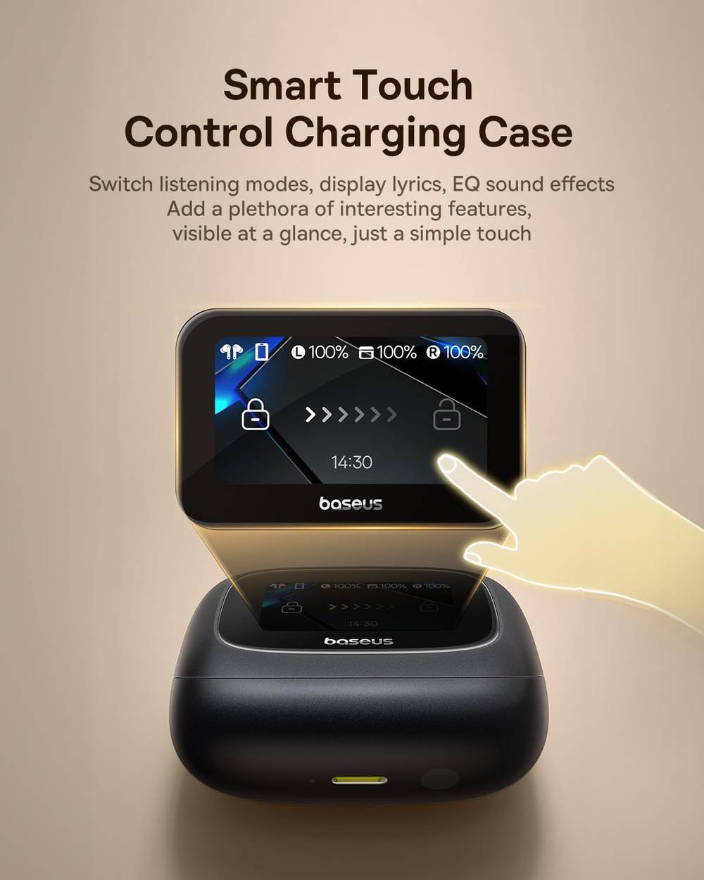 - Smart Touchscreen Charging Case – First-of-its-kind full-color LCD screen shows volume, battery, EQ, latency, wind noise control & more. One tap to control everything.