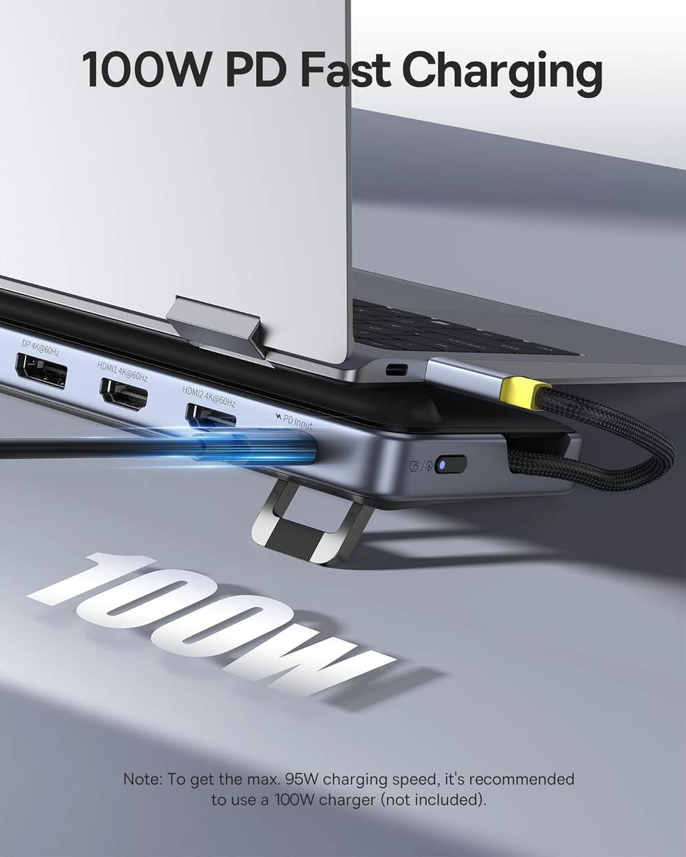- 100W PD Fast Charging: With 100W input and 85W output, the USB-C docking station's Power Delivery (PD) port charges your laptop quickly and efficiently as you work.