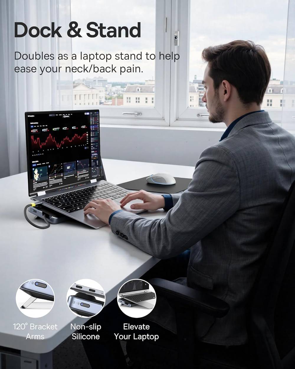 - Triple 4K Display Support: Expand your workspace with triple 4K clarity—seamlessly connect HDMI and DP displays. This USB-C docking station is ideal for multitasking, creative projects, or an immersive entertainment experience.