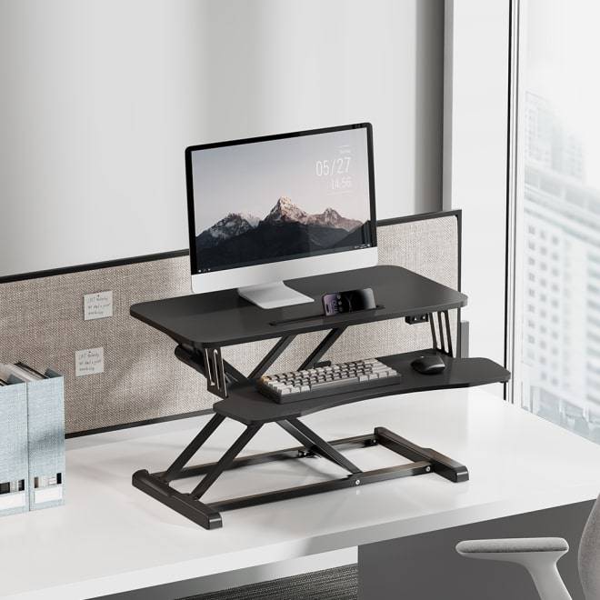 Looking for a cost-effective solution to enhance productivity and comfort in the workplace? Introducing the DWS15-01E Electric X-Lift Desk Converter – a versatile and efficient tool designed to transform any standard desk into a height-adjustable workstation. The desk converter is easy to install and use, requiring no additional hardware or complex assembly. Simply place it on the existing desk and adjust the height with the push of a button, allowing easily switch between sitting and standing positions throughout the day. With its sturdy X-Lift frame and spacious work surface, the desk converter is built to support heavy monitors and laptops, while providing ample space for all your essential work tools and accessories. Plus, the electric motor ensures smooth and quiet operation, so you can focus on your work without any distractions.