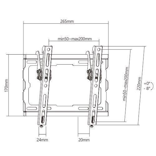 - Tilt Range: 0~-8°