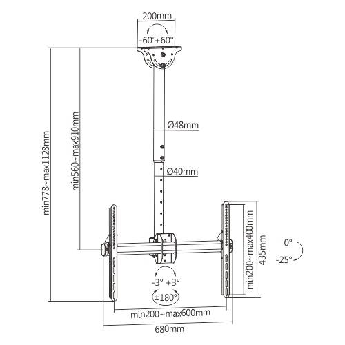 Be the first to review “Brateck TV Ceiling Mount 60×40 50kg 56-91cm PLB-CE946-01S” Cancel reply