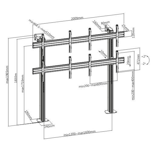 Brateck Video Wall FloorStand 4×4 60×40 50kg/Screen LVS02-446FB