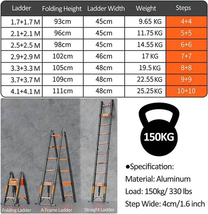 Carbon Steel Professional Multifunctional Telescopic Ladder 2×6 Σκαλοπάτια – Πτυσσόμενη Επαγγελματική Σκάλα Βαρέως Τύπου για Οικιακή & Βιομηχανική Χρήση