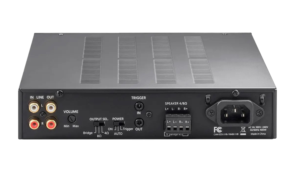 - 4-pole detachable speaker screw connector (Phoenix connector) with support for up to 12 AWG speaker wire