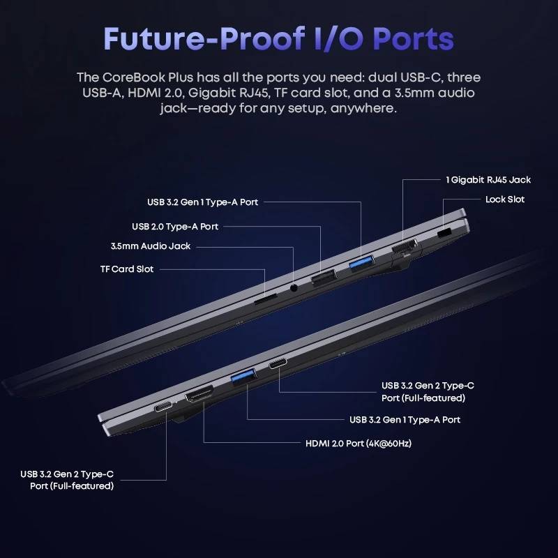 - Rich Ports Equipped with a variety of ports, including HDMI, USB-A, USB-C, a 3.5mm headphone jack, RJ45, and a TF card slot, it easily connects to peripherals and expansion devices.
