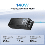 - 140W Max Input Power: RAPID power bank recharges up to 50% in approximately 20 minutes, perfect for two full phone charges or a quick laptop top-up to last the day.