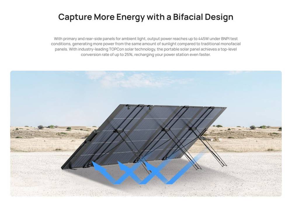 • Up to 25% conversion efficiency rate with a bifacial design
