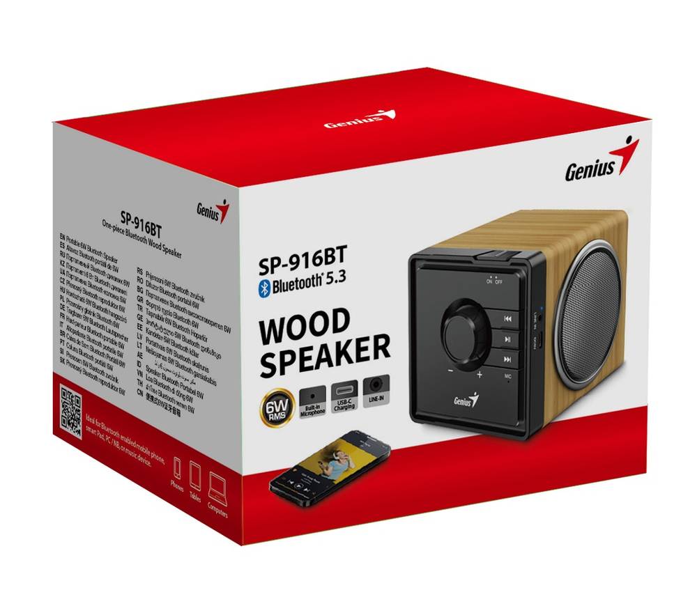 Be the first to review “Genius Mobile Speaker Portable BT 6W SP-916BT Pine Wood” Cancel reply