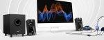 This three-piece system is designed to deliver superior audio performance to computers, iPods, MP3 and other portable devices. And integrated in line control pod for volume adjustment, Headphone and Microphone jack.