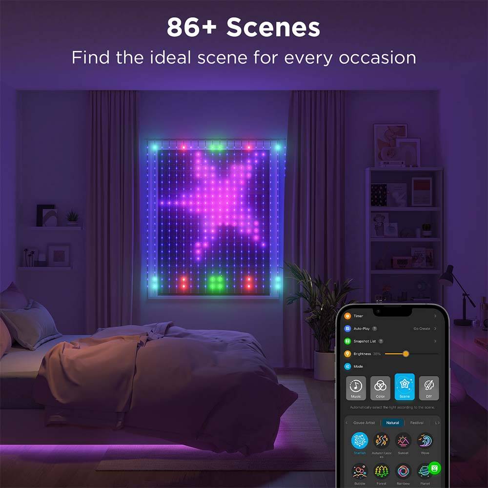 • Manage the  Curtain Lights easily via the app, control box or voice control.