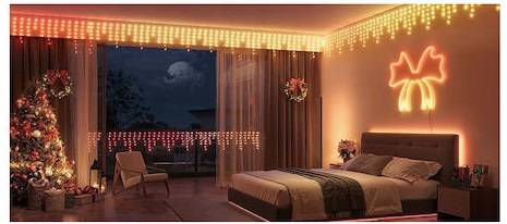 - Eye-Catching Design: Hundreds of LEDs arranged in icicle strands for a magical, cascading glow.Full Smart Control: Manage colors, brightness, and light modes via the Govee Home app, voice assistants (Matter, Alexa, Google), or scheduled scenes.