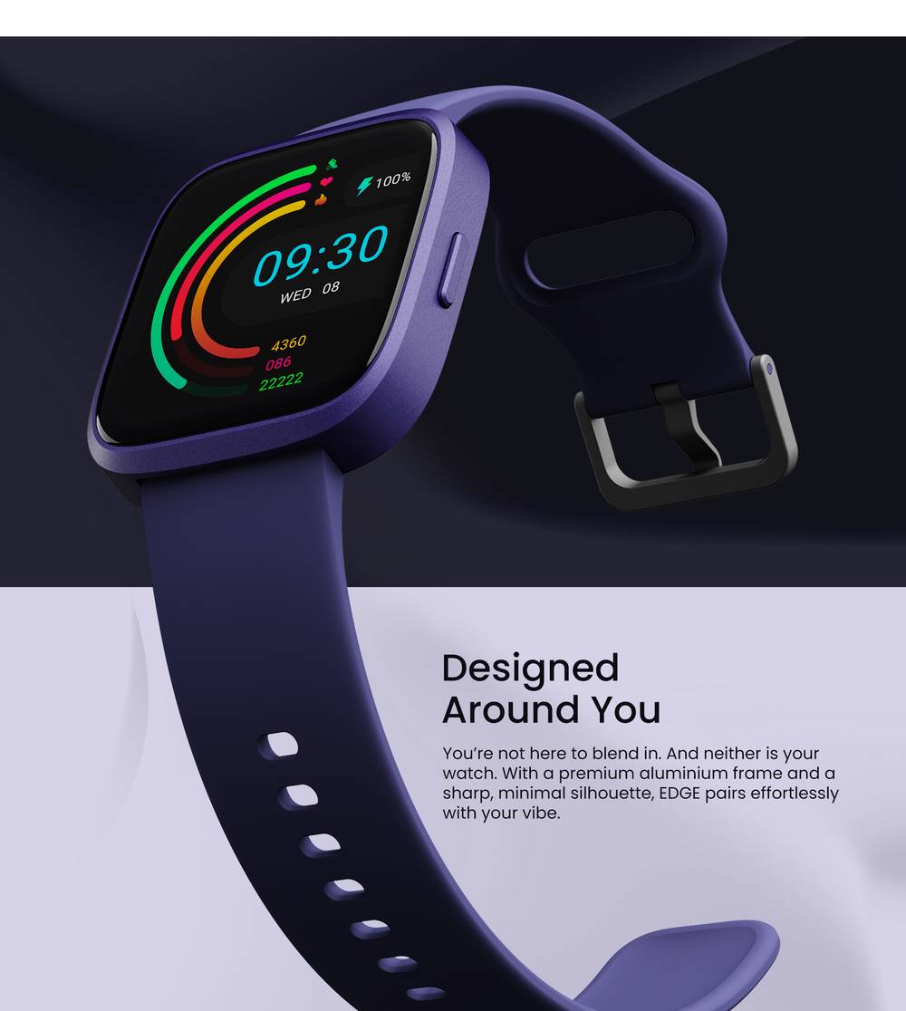 - Designed around you: You’re not here to blend in. And neither is your watch. With a premium aluminium frame and a sharp, minimal silhouette, EDGE pairs effortlessly with your vibe.