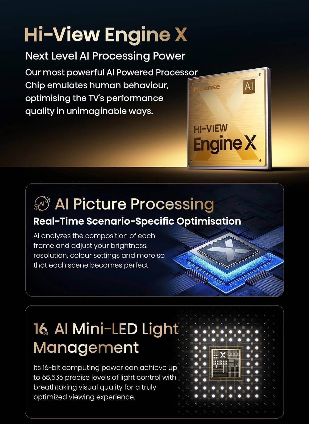 - Premium 4K Mini LED X: 20,000 mini LED, 5,000 full array local dimming zones, 2,000 nits peak brightness and quantum dot colour ensure image quality like no second in its class