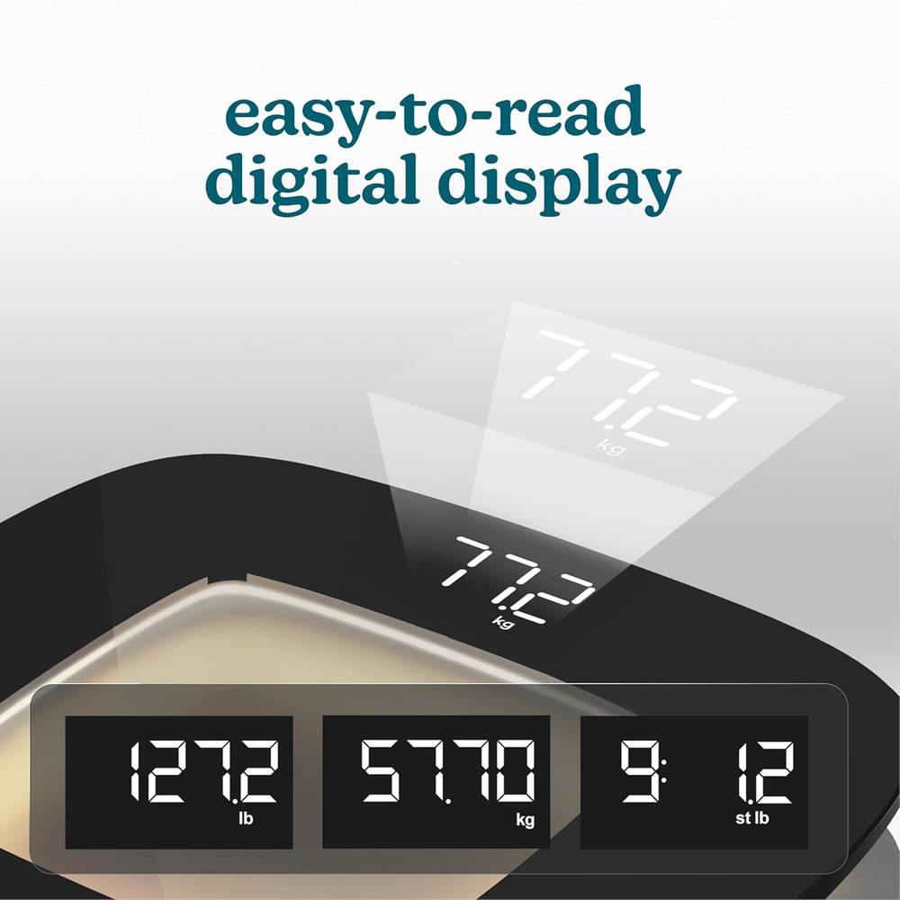 - ACCURATE DIGITAL SCALES FOR BODY WEIGHT: Step on for precise weight readings in stones, pounds, or kilograms on glo’s large LED display. These bathroom scales provides an accurate measurement for daily health monitoring