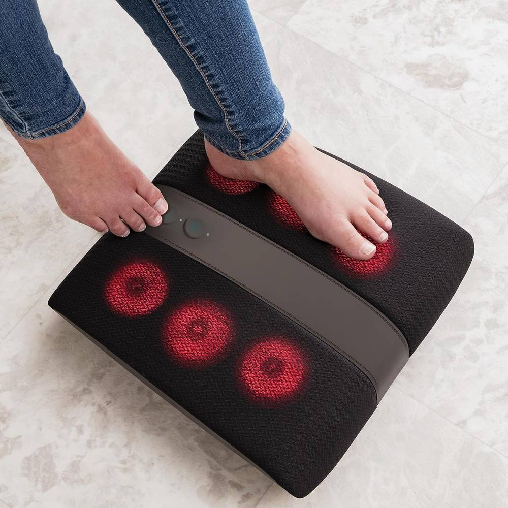 - Kneading Foot Massager: This foot massager uses 28 rotating knots to provide targeted relief to sore feet soles through professional style techniques that create the feeling of a real massage