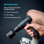 - Portable Power Lightweight and compact with an included travel case, this massage gun offers up to 3 hours of whisper-quiet runtime from a single charge for rest and recovery on-the-go.