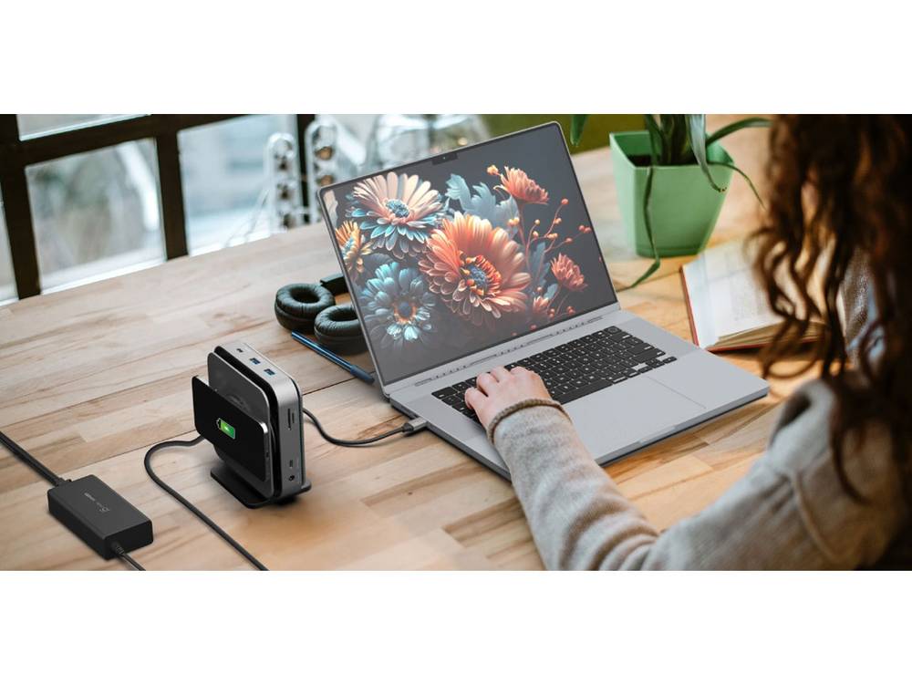 With USB™ Power Delivery 3.1 it’ll take you to a new flexible power application, you'll be able to charge your laptop and power your peripherals with a single USB-C® power adapter even if your laptop only has one USB-C® port. The top of the dock functions as a wireless charging pad that supports up to 15W fast charging. Access a wired network through the Gigabit Ethernet port for a fast and stable network connection. It is also equipped with a cable storage compartment which ensures an easy connection regardless of your USB-C® port’s location.