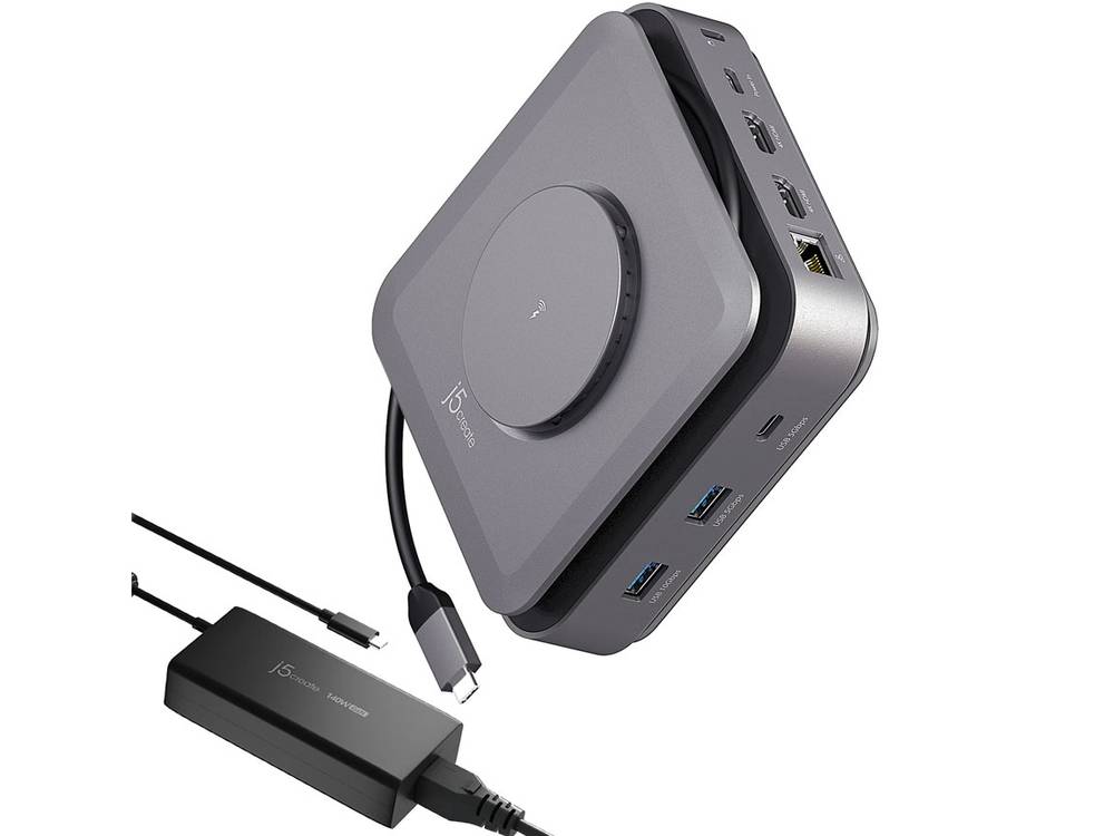 j5create Dock USB-C Dual Display 4K MST MacBookM3 HDMI/RJ45/SD/USB/PD + Wireless Charger + 140W PSU UK JCD3199P
