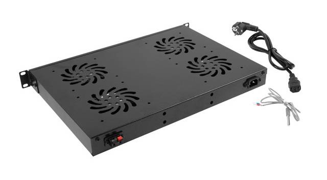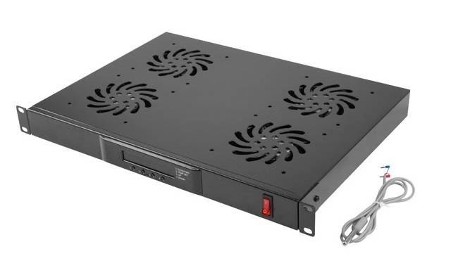 Lanberg's horizontal ventilation panel 1U 230V with LCD and 4 fans + thermostat; designed for 19" cabinets.
