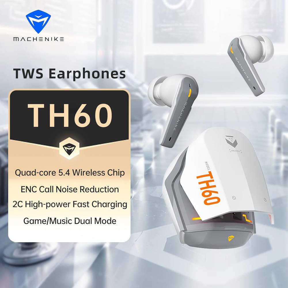 Machenike TWS Earphones TH60 , Ultra-Low Latency, Active Noise Cancelling Mic, 36-Hour Battery Life, IPX5 , VR, Switch, Pc, Phone, White