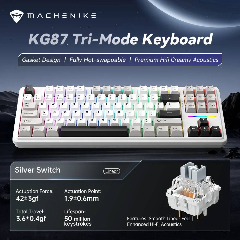 Machenike Wireless Gaming Keyboard ,Wired,Bluetooth,2.4G, Linear Silver Switches,4000 mAh battery, KG87