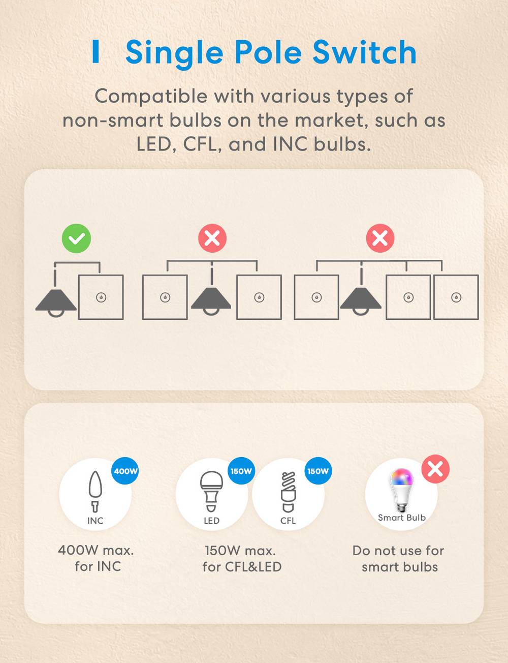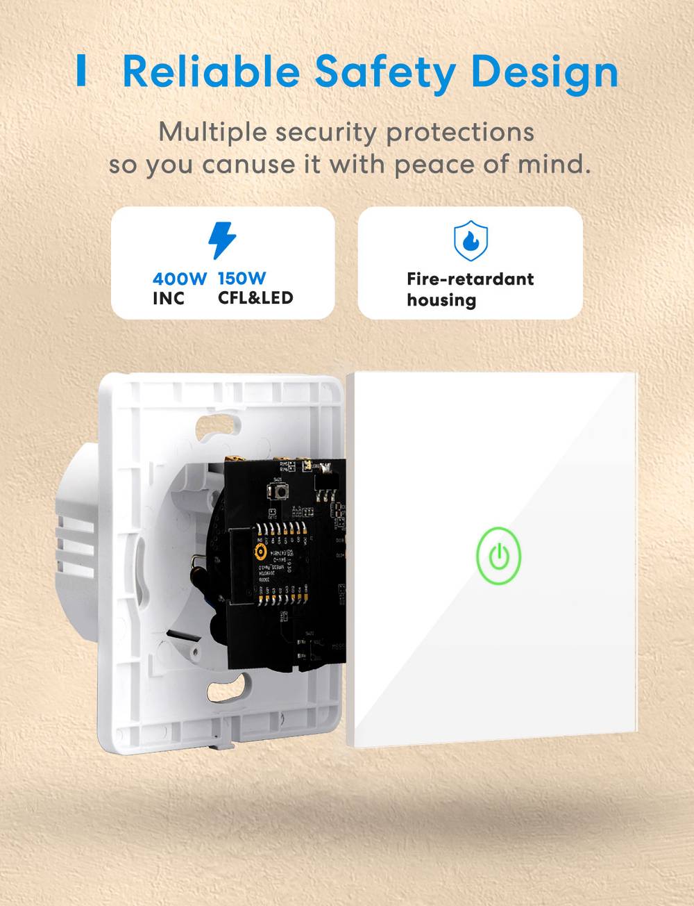 Meross Homekit Smart Wi-Fi Wall Switch 1-Gang 1-way MSS510HK-EU