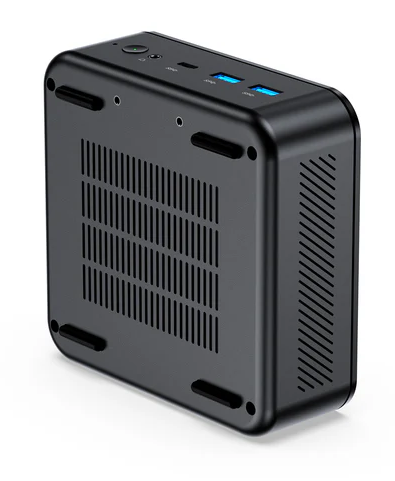 The mini PC features a comprehensive port array. Front-facing ports include 2×USB-A 3.2 Gen2, 1×3.5mm audio combo jack, 1×power button, and 1×reset button. Rear ports include 1×USB-A 2.0, 1×USB-A 3.2 Gen2, 2×RJ-45 1G Ethernet, and 1×DC power input, delivering ultimate connectivity flexibility. Supports triple-band 4K@60Hz ultra-clear output (1×HDMI 2.1 + 1×USB-C 3.2 Gen2 + 1×DP 1.4), enabling simultaneous connection of three displays for an immersive multi-screen experience. Measuring 130×127×46.9mm and weighing just 483g, its compact, portable design perfectly complements small workspaces.