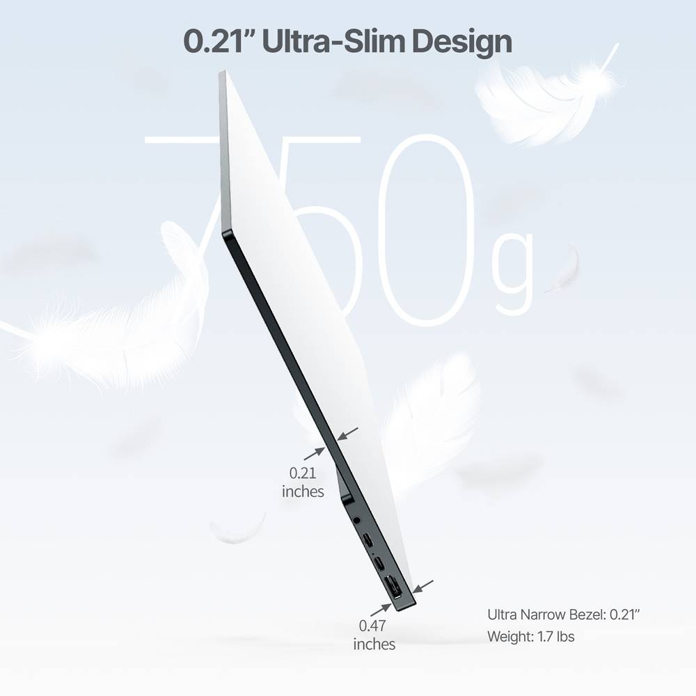 Weighing a mere 910g with an ultra-slim design, the SF16T monitor is perfect for portable use. It features a convenient foldable stand, saving desk space while offering a sturdy and non-slip base. The SF16T allows multi-angle adjustments to meet your needs in various scenarios, offering a more comfortable and personalized viewing experience. The SF16T moves with you, providing consistent performance when multitasking or watching a movie at a café or home.