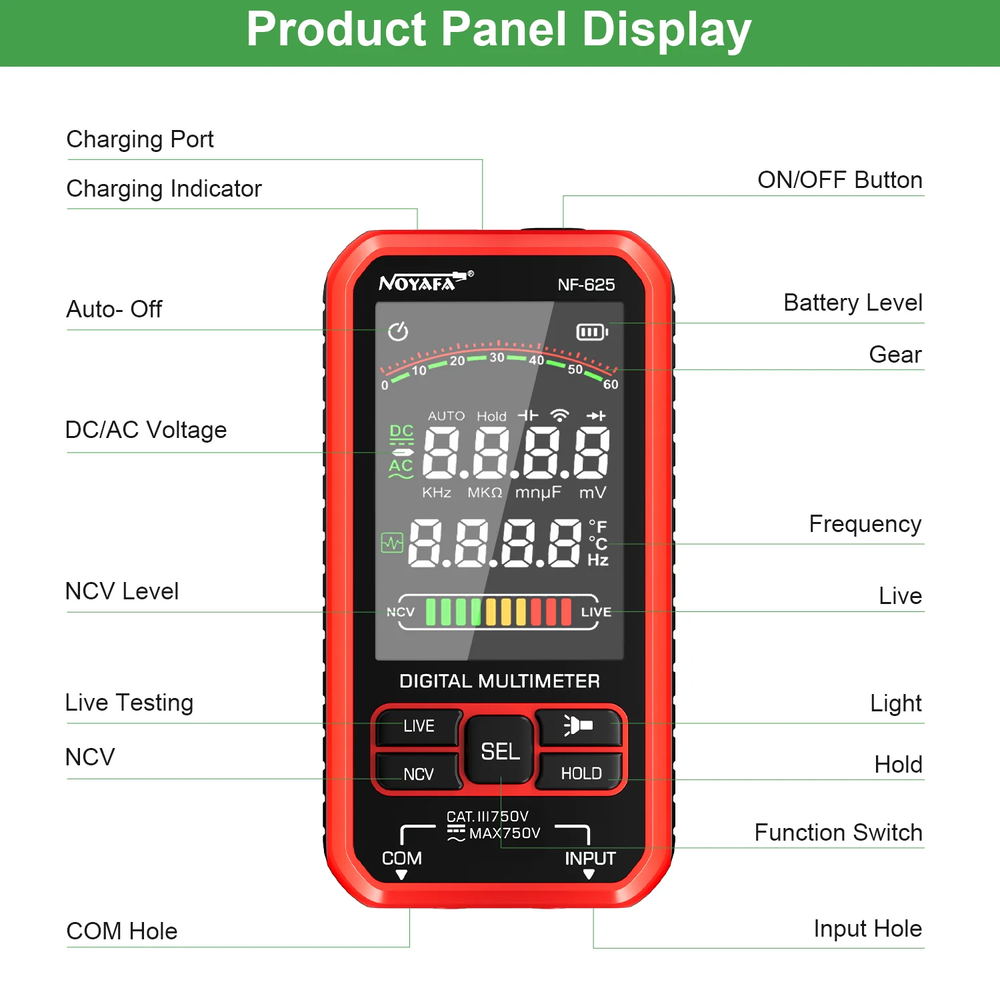 Noyafa Digital Multimeter for Resistance, Capacitance, Temperature, Frequency & AC/DC Voltage NF-625