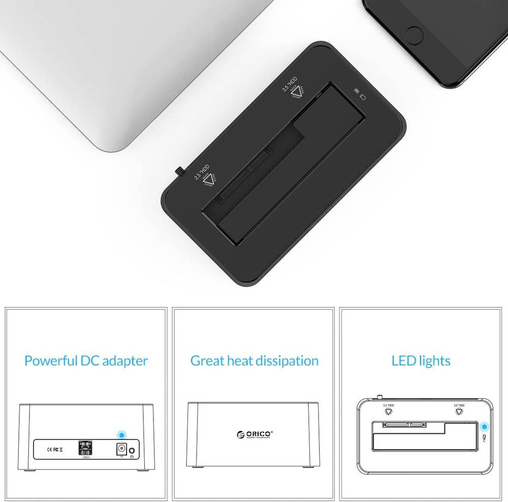 - WHATS IN THE BOX: 1x ORICO Hard Drive Docking Station, 1x 12V Power Adapter, 1x 3.3 Ft. USB Cable, 1x User Manual