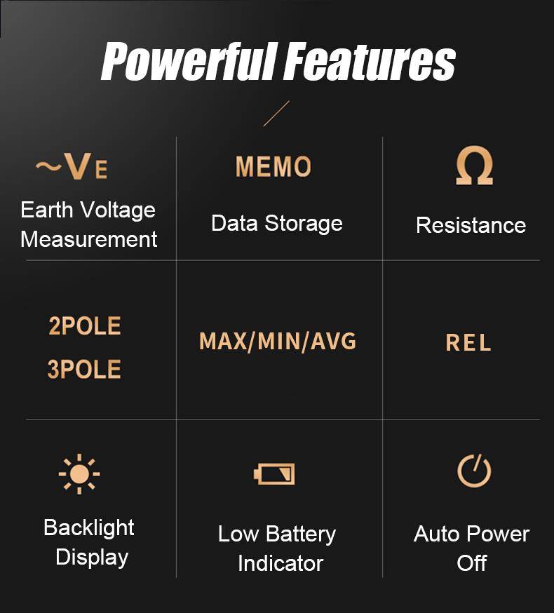Digital Bipolar and Tripolar Earth Resistance Meter, Measurement of Voltage to Earth, Measurement of Maximum/Minimum and Average Values, Data Storage for up to 100 Measurements, No Data Loss in the Event of a Power Failure. Measurement of Interference Voltages. It can be used for measurements such as: High Voltage Pylons, Buildings, Earthing of Electrical Systems, Mobile Telephone Base Stations, High Frequency Transmitters, etc., Monitoring and Design of Lightning Protection Systems, Resistance Measurements via Auxiliary Earth Electrodes. The instrument is controlled by an intelligent microcontroller chip with high reliability and precision. The instrument is equipped with a large, easy-to-read, backlit digital liquid crystal display. Low battery indicator, Auto Power Off.