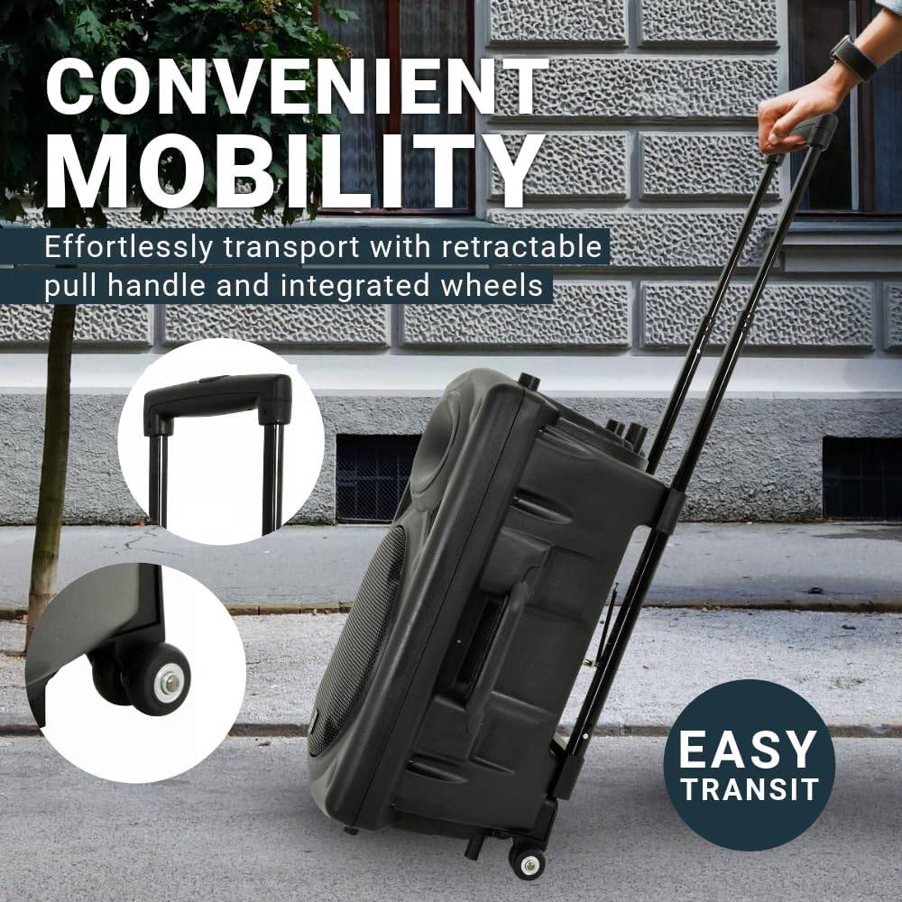 QTX QR12PA 12” Professional Portable Karaoke & PA Speaker with 2x Wireless Microphones, Bluetooth USB & FM 178.847UK